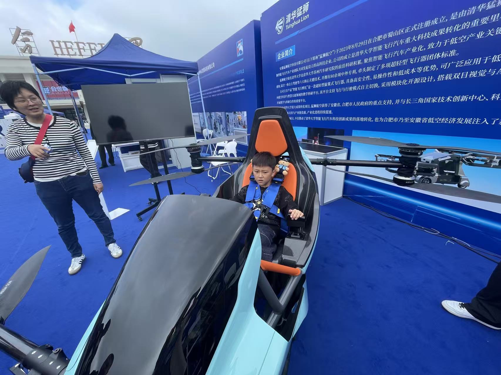 “以后開著小飛機上班也太酷了!”一名小朋友坐在安徽猛獅航空科技有限公司帶來的智能飛行摩托上,發出了對未來智能交通工具的向往。