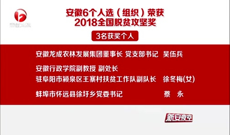 安徽6個人選(組織)榮獲2018全國脫貧攻堅獎