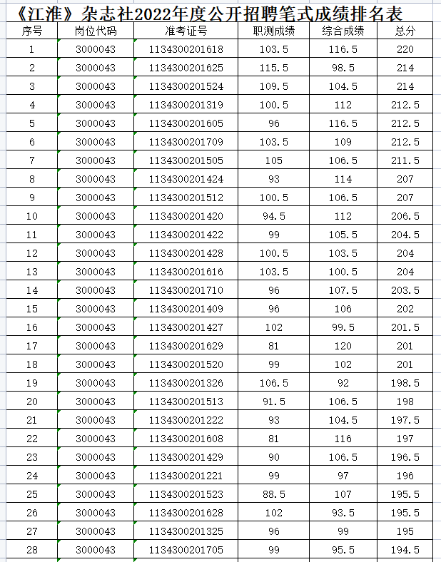 根據(jù)省委組織部、省人社廳通知要求,現(xiàn)將我社(崗位代碼:3000043)2022年度公開招聘工作人員筆試成績排名情況予以公布。