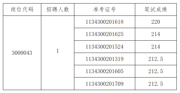 根據考生筆試成績及所報考崗位招聘計劃數,按5:1比例從高分到低分(須達到筆試最低控制合格分數線:兩科筆試成績總分達到150分且單科成績均不低于60分)確定資格復審人員名單(見附件),最后一名如有數名考生筆試成績相同的,一并確定為參加專業測試人選。