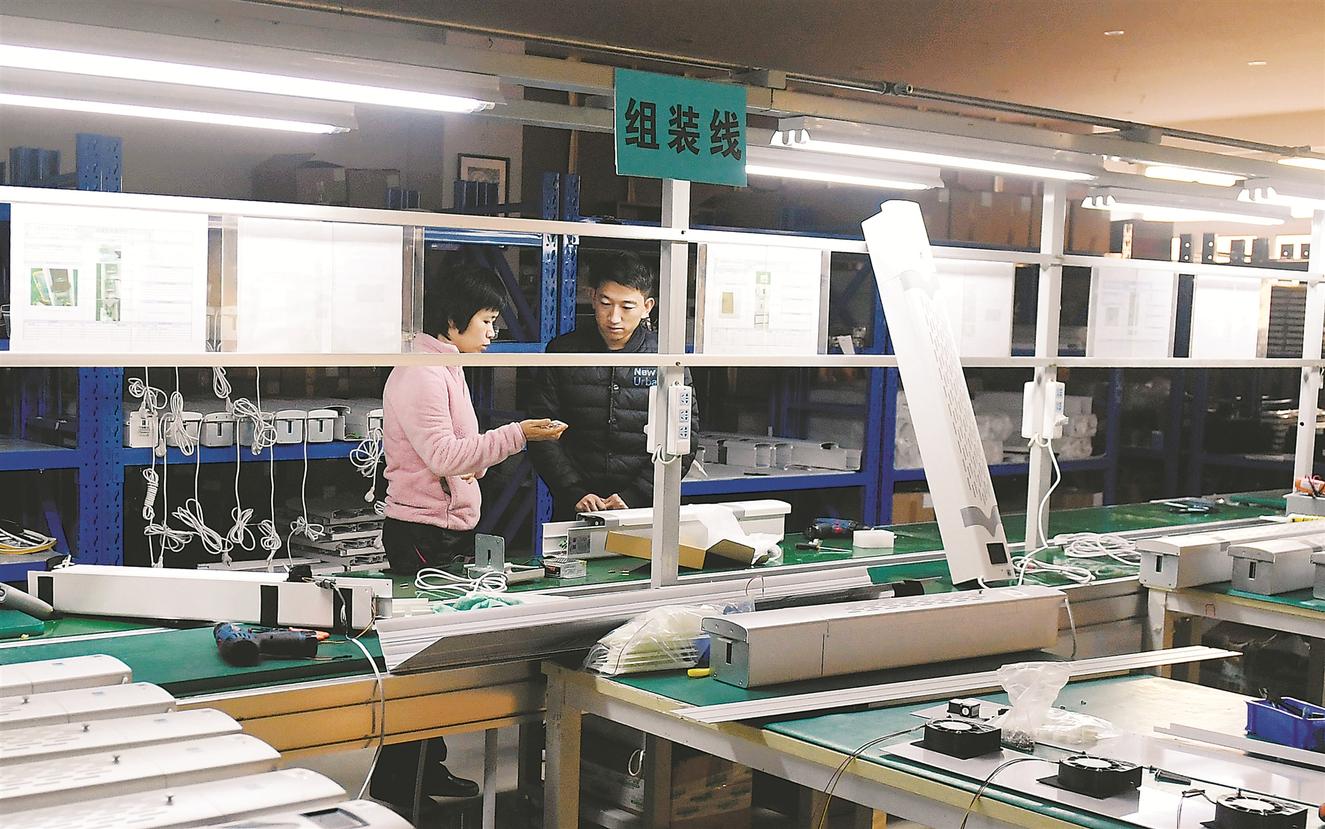 陳娉(左一)深入車間與員工討論如何優(yōu)化產(chǎn)品。