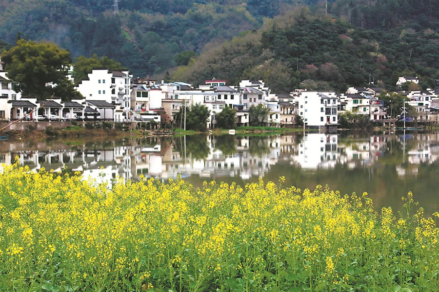 二月二十二日拍攝的歙縣新安江邊盛開的油菜花。春回大地,皖南油菜花次第綻放,即將迎來賞花季。本報記者 潘成 攝