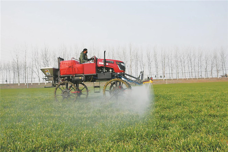 2月25日,宿州市埇橋區(qū)順河鄉(xiāng)村民在給麥田施藥防治病蟲草害。本報(bào)通訊員 祝家剛 攝