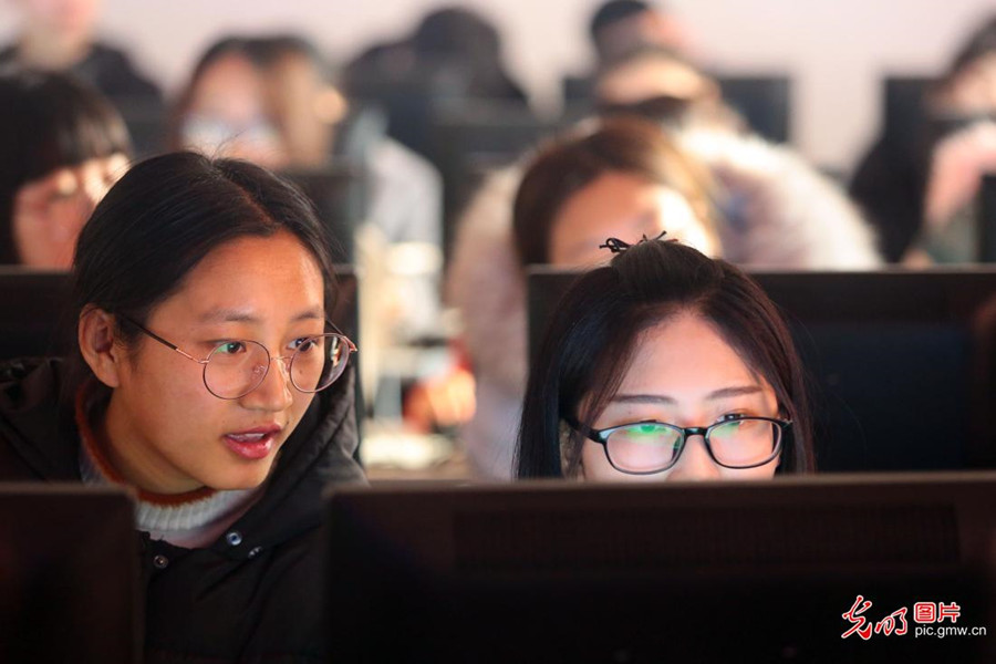 為了加速京津冀協(xié)同發(fā)展中技能人才培養(yǎng)速度,天津中德應用技術大學與承德應用技術職業(yè)學院2018級學生共同開展"1+2"分段培養(yǎng)新模式。即第一年在天津中德學習,后兩年回承德學習。6個專業(yè)的237名學生已經在天津進行了一個學期的學習生活。圖為2019年2月25日,學生迎來了他們新學期的第一堂實訓課。(劉東岳攝/光明圖片)