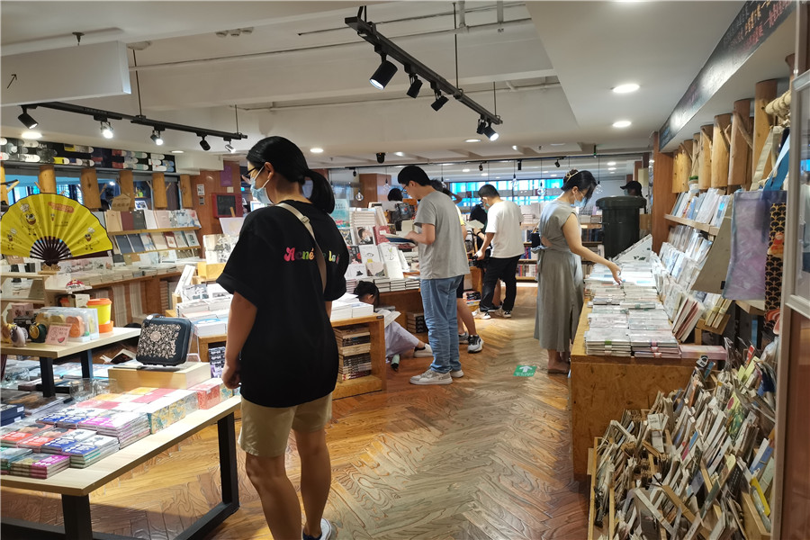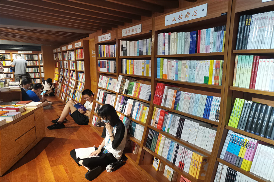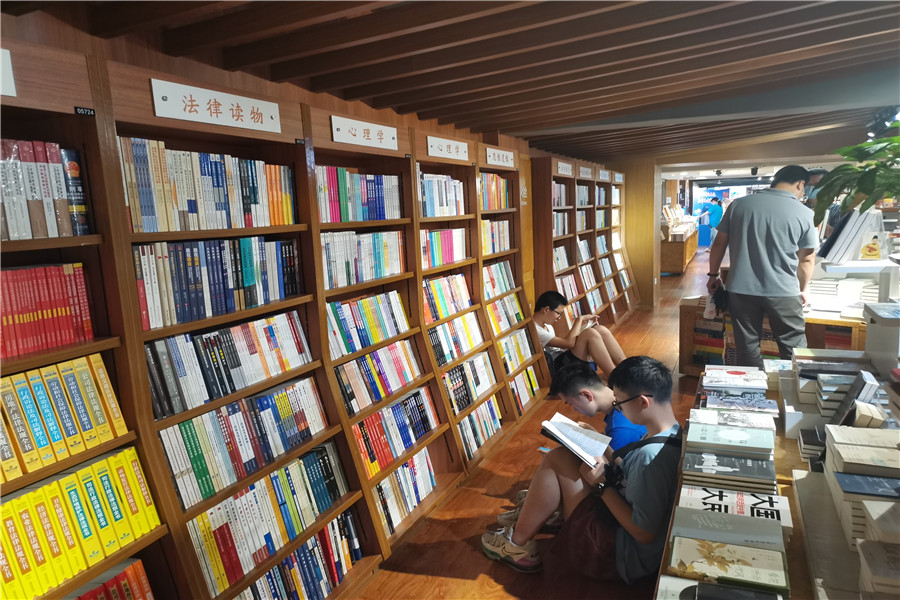 店內(nèi)人來人往,市民或選購圖書或埋頭閱讀,彌漫著一股濃濃的書香味。正值暑期,一些中小學(xué)生或獨(dú)自或跟隨家長前往書店,暫時卸下繁重的學(xué)習(xí)重?fù)?dān),在店內(nèi)挑選自己喜歡的書本并津津有味地看起來。