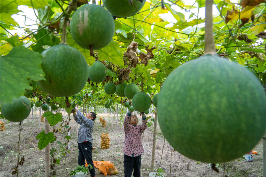 日前,肥東縣包公鎮一處瓜蔞種植田,農民在采收入藥青瓜蔞。近年來,當地因地制宜發展瓜蔞特色產業,目前種植5000余畝,助力群眾增收。(通訊員 阮雪楓 攝)
