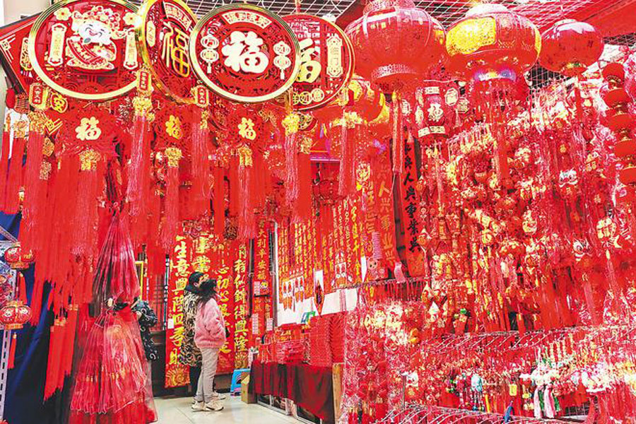 2025年的腳步越來(lái)越近,商家們將中國(guó)結(jié)、燈籠、蛇年玩偶等新年飾品放在顯眼位置,引得市民紛紛駐足。