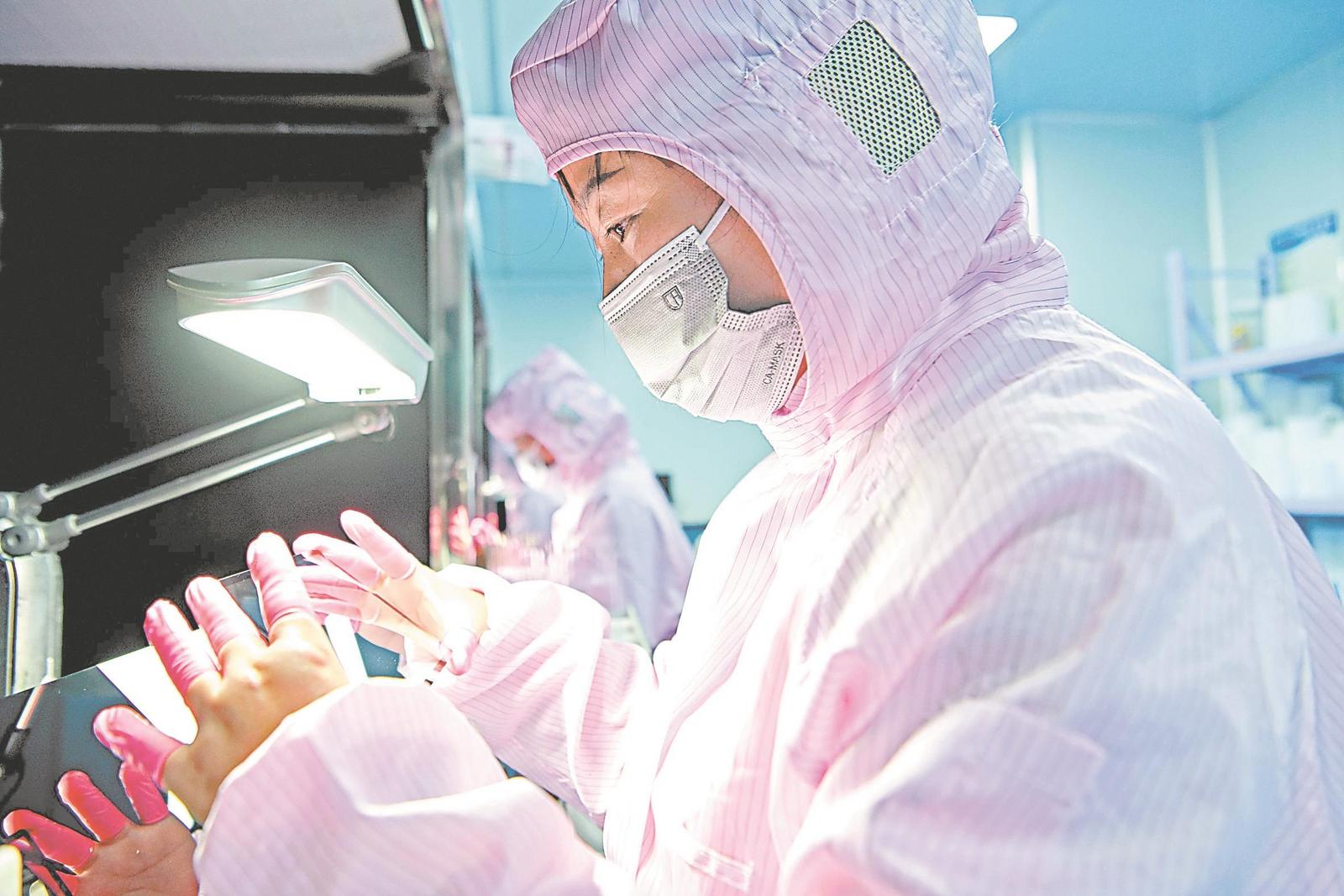 2月5日,位于淮南市高新區(qū)的安徽晶橋光電科技有限公司內(nèi),工人在檢測顯示屏。通訊員 陳彬 攝