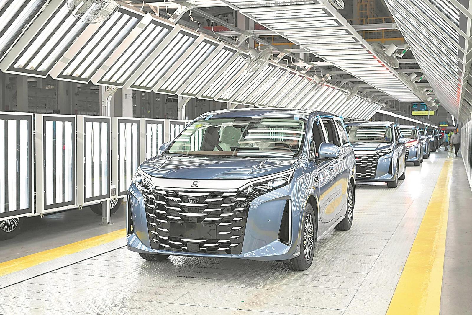 2月6日,在位于長豐縣下塘鎮(zhèn)的合肥比亞迪汽車有限公司總裝車間,比亞迪夏MPV下線。記者 張大崗 攝