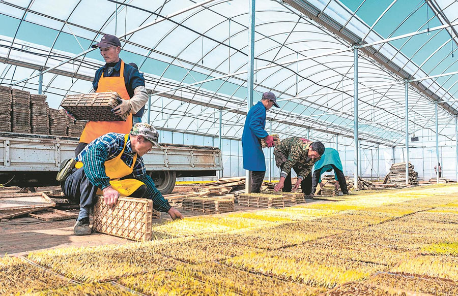 3月19日,合肥市廬江縣郭河鎮(zhèn)廣寒村天壤水稻種植合作社的育秧工廠大棚里,農(nóng)民在擺放秧盤(pán)進(jìn)行工廠化集中育秧。目前,當(dāng)?shù)卮焊a(chǎn)全面鋪開(kāi)。通訊員 左學(xué)長(zhǎng) 攝