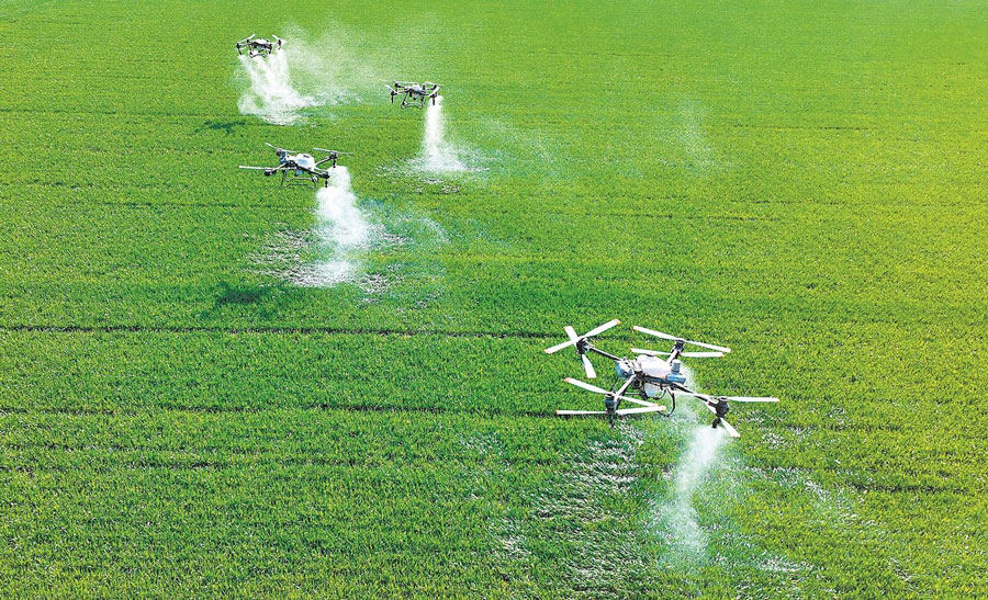3月19日,在亳州市利辛縣胡集鎮(zhèn)張莊村麥田,工作人員操作無(wú)人機(jī)給小麥噴灑藥物(無(wú)人機(jī)照片)。目前,亳州各地正加強(qiáng)小麥田間管理,為豐收打基礎(chǔ)。通訊員 劉勤利 劉倩楠 攝