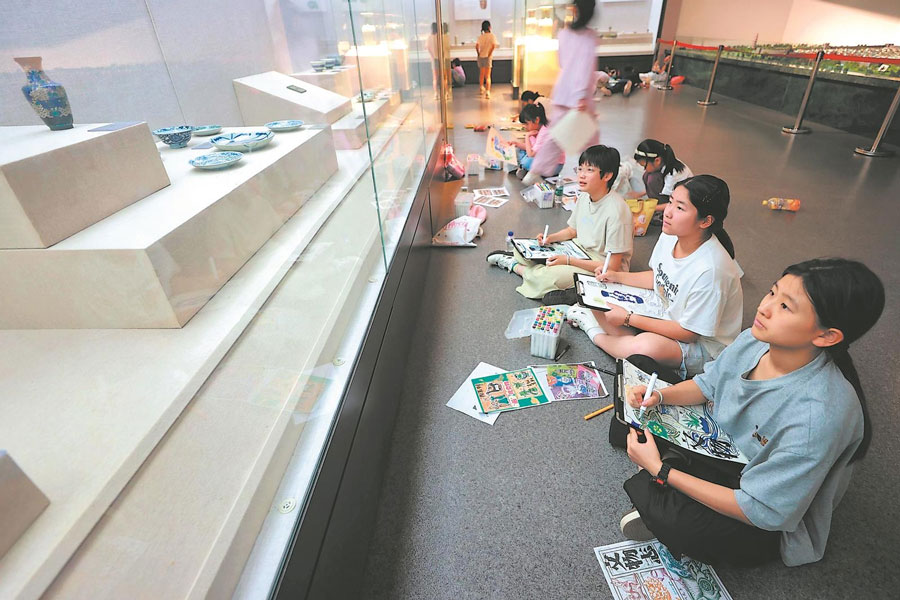 5月17日,當涂縣博物館,小朋友在參加該館舉辦的“我在博物館畫文物”活動,從文物了解家鄉(xiāng)的歷史和文化。通訊員 汪宗本 趙晴 攝