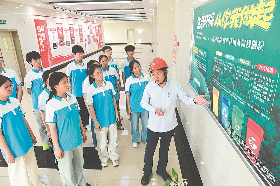 6月6日,阜陽市插花中學高一學生在阜陽皖能環保電力有限公司內參觀,近距離感受垃圾“變廢為寶”過程,感受綠色環保科技魅力。特約攝影 王彪 通訊員 張金亭 攝