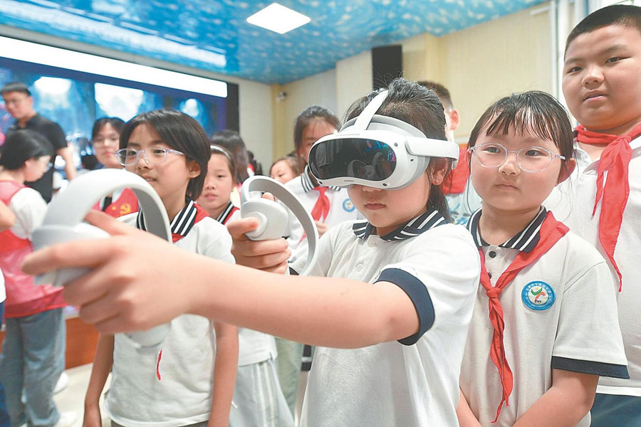 6月10日,在合肥市十里廟小學,小學生在體驗XR設備。當天,“AI魔法世界”科普知識進校園活動走進該校,學生通過XR設備等互動體驗,沉浸式感受科技創新的獨特魅力。通訊員 葛宜年 攝