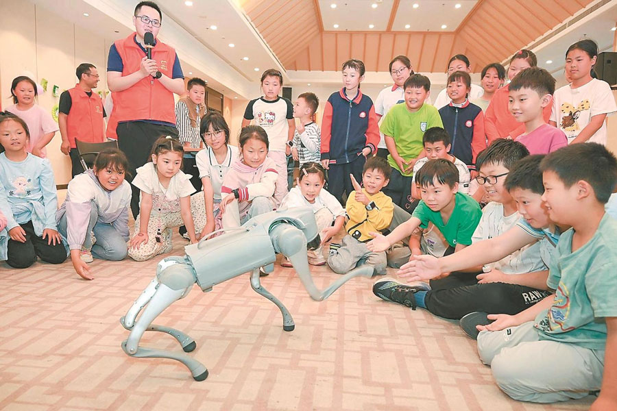 近日,在馬鞍山市和縣科技館,來自功橋鎮的30名學生正在與“機器狗”進行現場互動,感受科技的魅力。通訊員 秦祖泉 攝