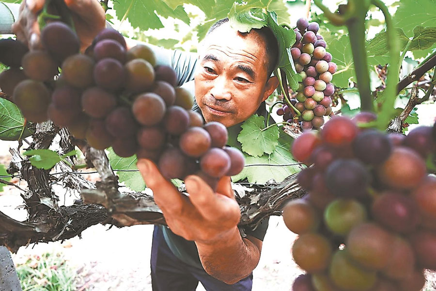 7月12日,壽縣炎劉鎮(zhèn)石埠村,村民們正在一家葡萄種植合作社內(nèi)采摘葡萄。目前,葡萄迎來上市“黃金期”,將極大豐富市民們的“果盤子”。通訊員 萬前進 攝