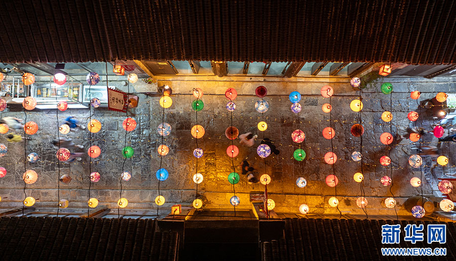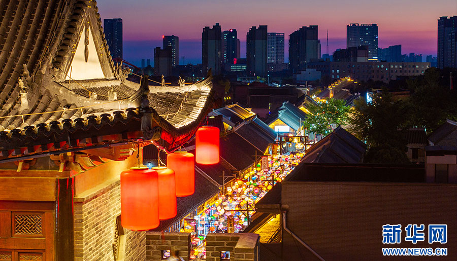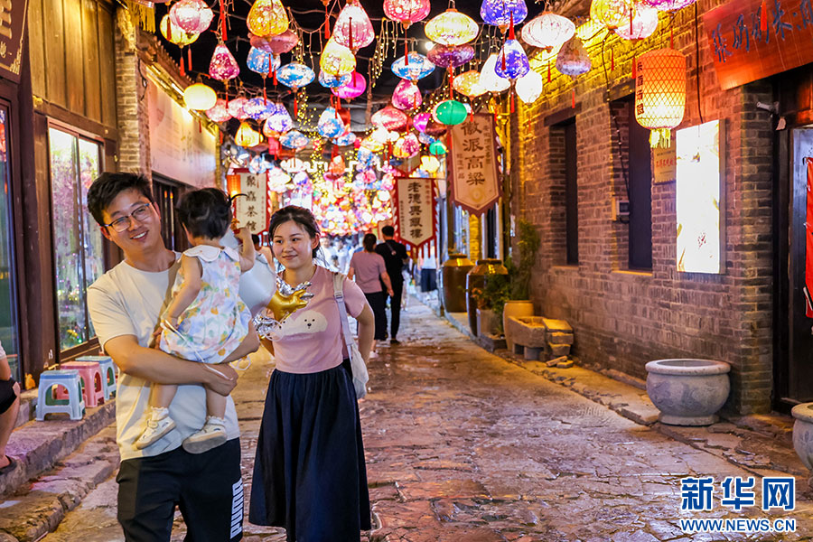 近日,市民在安徽省淮北市濉溪縣石板街賞夜景。