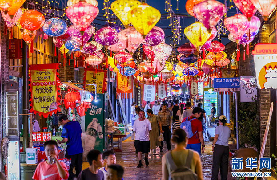??近年來,安徽省淮北市濉溪縣對古城石板街進(jìn)行了整體提升改造,打造夜食、夜娛、夜購等場景,讓“夜經(jīng)濟(jì)”持續(xù)升溫。進(jìn)入暑期以來,石板街客流量攀升,多樣化消費場景釋放夏日經(jīng)濟(jì)活力。新華網(wǎng)發(fā)(王文 攝)