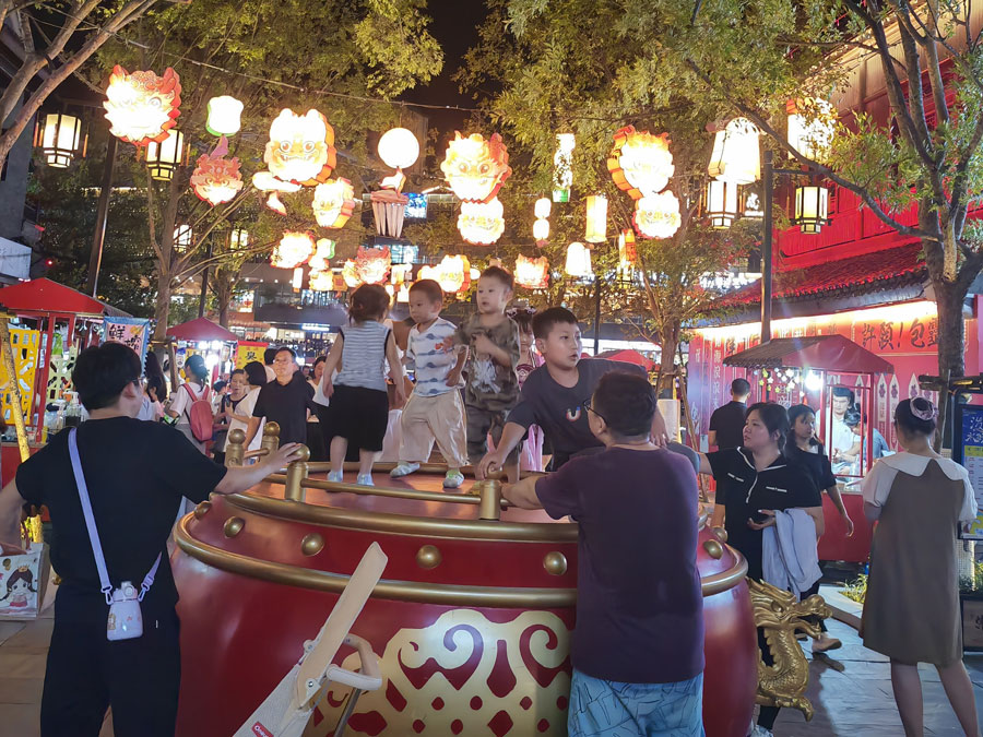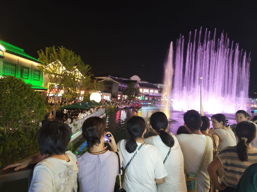 8月23日傍晚,華燈初上,霓虹閃爍,古色古香的塘溪津門水街游人如織。以宋式文化為底蘊的津門水街,不僅匯集各色美食,還有各類國風文創小鋪。夜幕降臨,美輪美奐的水光交融表演更是吸引大量游客來此打卡消費。“夜經濟”不僅點亮了城市的夜色,也在不斷激發消費新活力。(賀鵬云)