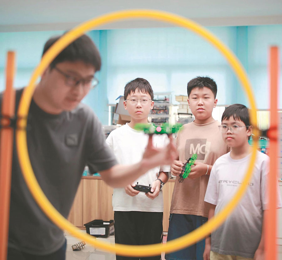 9月14日,蕪湖市繁昌區(qū)青少年活動(dòng)中心科技課堂,老師給小朋友們講解無(wú)人機(jī)操控知識(shí)并進(jìn)行飛行訓(xùn)練。本報(bào)通訊員 程健 攝