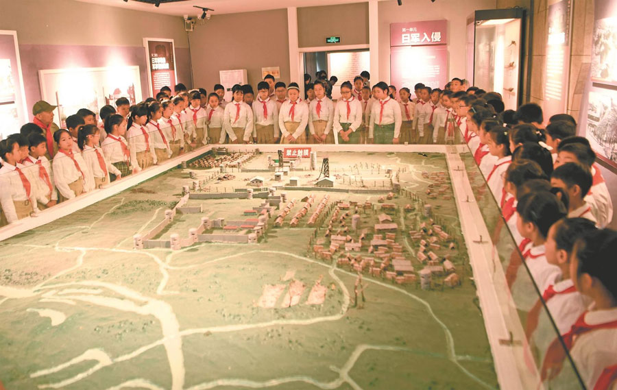 9月18日,淮南師范附屬小學學生走進大通萬人坑教育館參觀日軍侵占淮南煤礦罪證陳列展。特約攝影 陳彬 攝