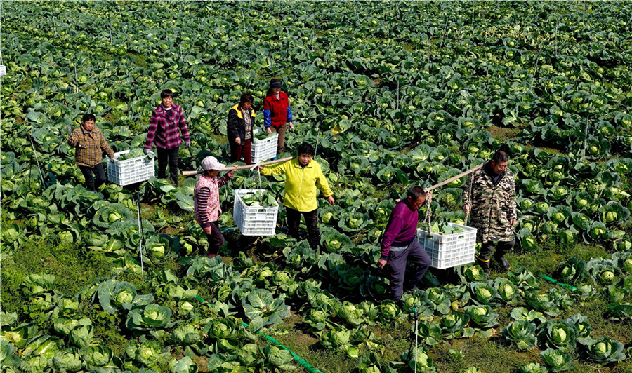 10月22日,在亳州市利辛縣舊城鎮陸暗樓村蔬菜種植基地,農民在采收包菜供應市場。近年來,亳州市大力發展包菜、娃娃菜等規?;N植,讓群眾在家門口實現就業增收。本報通訊員 劉勤利 楊晴 攝