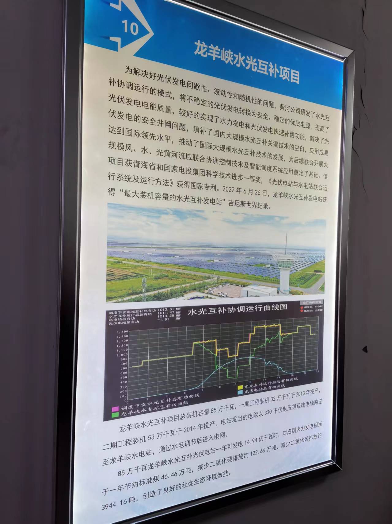 通過“水光互補”,龍羊峽水電站送出線路年利用小時數(shù)由原來的4621小時提高到5019小時;以龍羊峽“水光互補”光伏電站年均約14.94億千瓦時的發(fā)電量計算,每年可節(jié)約標準煤約46.46萬噸,減少二氧化碳排放約122.66萬噸。